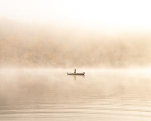 Brisk fall morning canoeing through the fog in Vermont. As the sun rose it cast a golden glow that lit up the clouds.