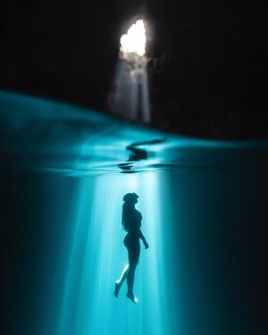Finding the light in Cenote Samula, Tulum.